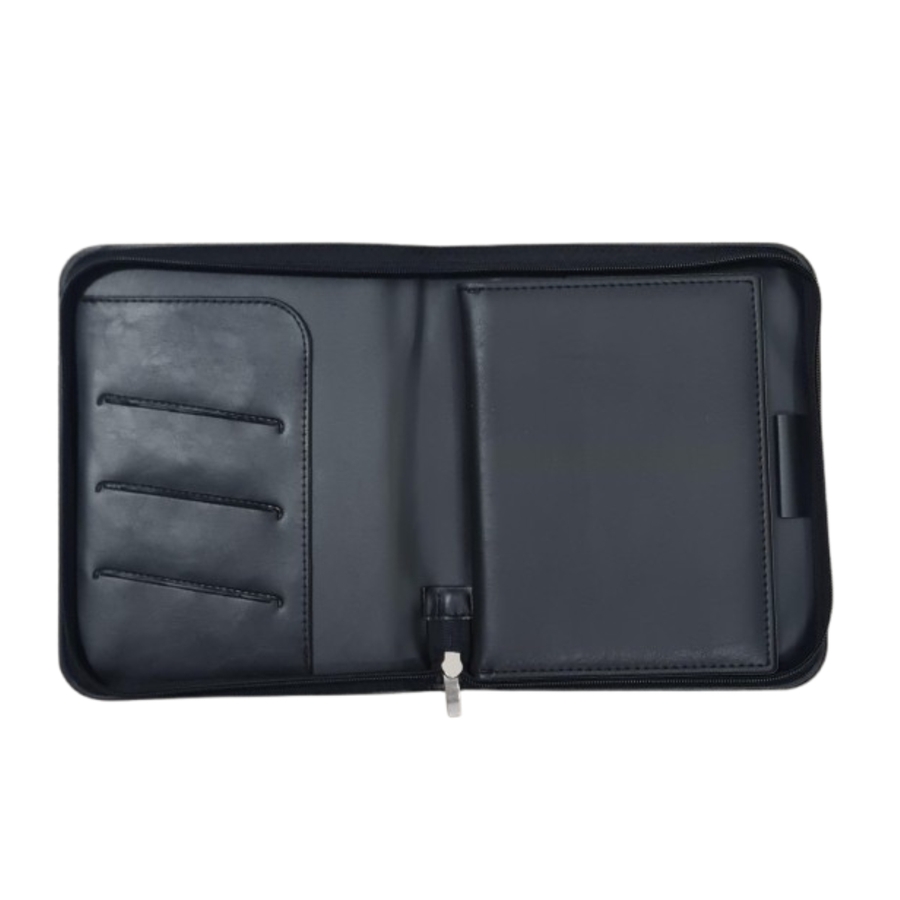 Cubierta con carpeta y cierre de cremallera. Portafolio interior fuelle