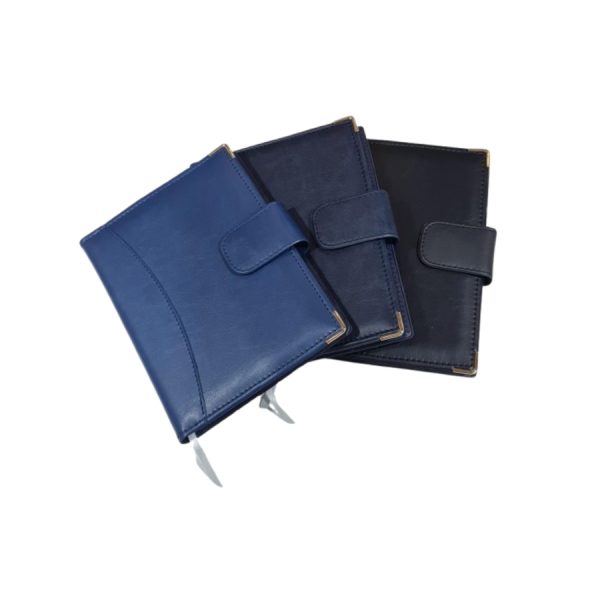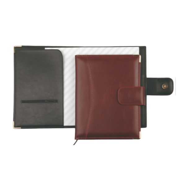 cubierta acolchada cosida y presilla con broche, con solapa interior.