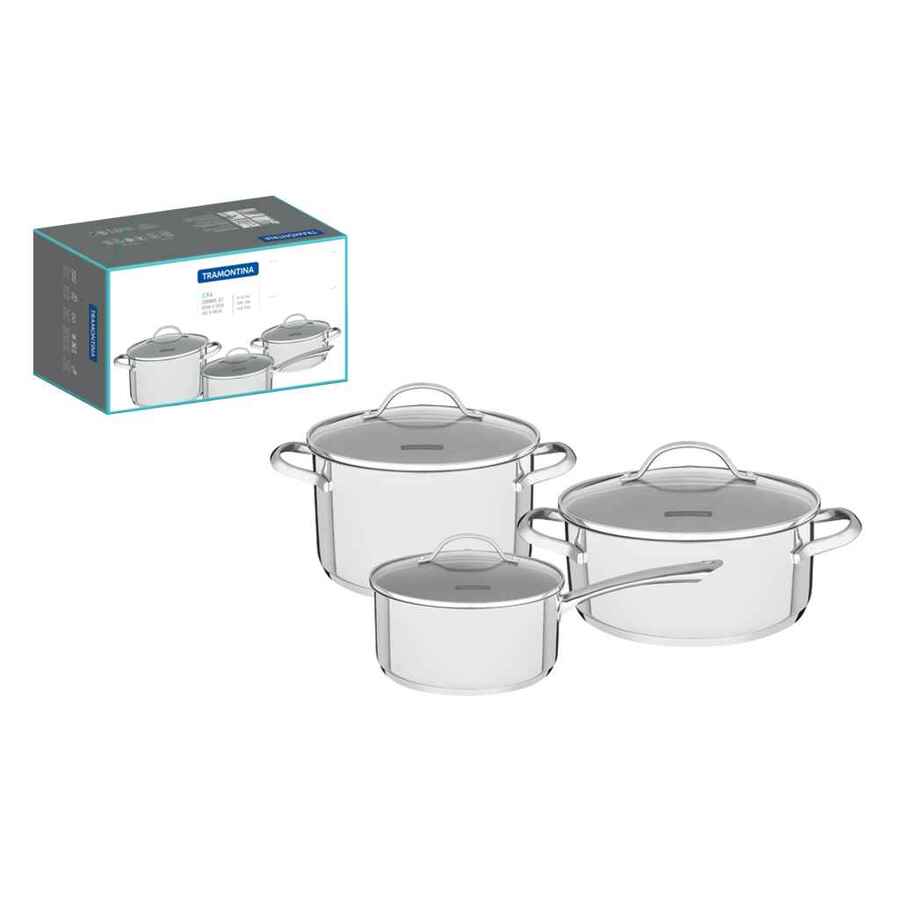 Batería De Cocina C/Tapa De Vidrio 3 Piezas Una Tramontina