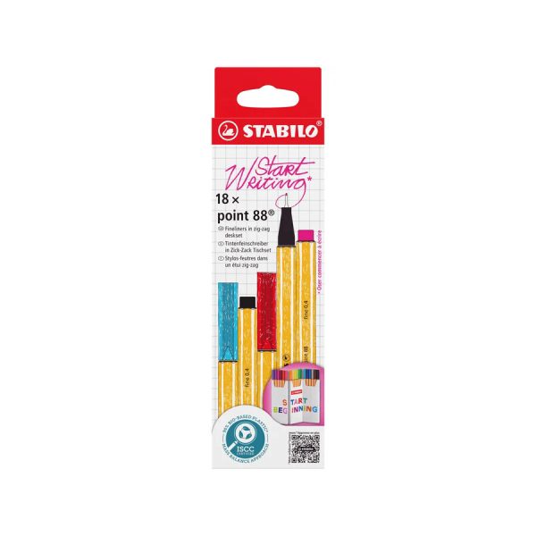 Fibras Stabilo Point 88 Deskset Zig-Zag 18 colores