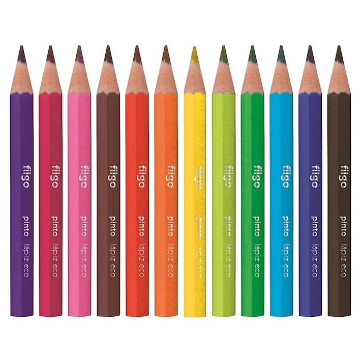 Lápices de colores diseñados para el uso escolar, con un espacio para escribir el nombre. Estos lápices de colores hexagonales tienen una mina de calidad superior de 6,8 mm. Estan barnizados en el color de la mina y tienen las esquinas plateadas. Sus colores son muy alegres, intensos y fáciles de afilar.
