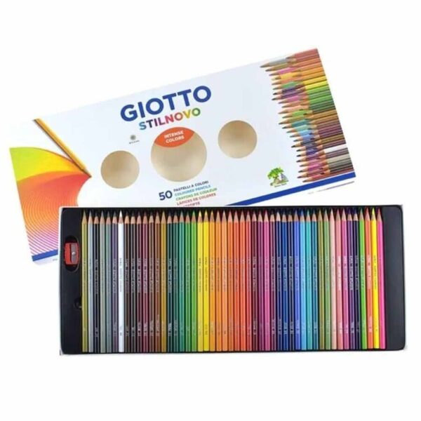 Los lápices de colores Giotto Stilnovo, disponibles en una bonita caja de regalo que encantará tanto a niños/as y como a adolescentes que quieren dar rienda suelta a su imaginación. La caja contiene 50 lápices de colores Giotto Stilnovo de calidad superior con colores intensos y brillantes, acompañados de un práctico e indispensable sacapuntas de cuchilla de alta calidad.
