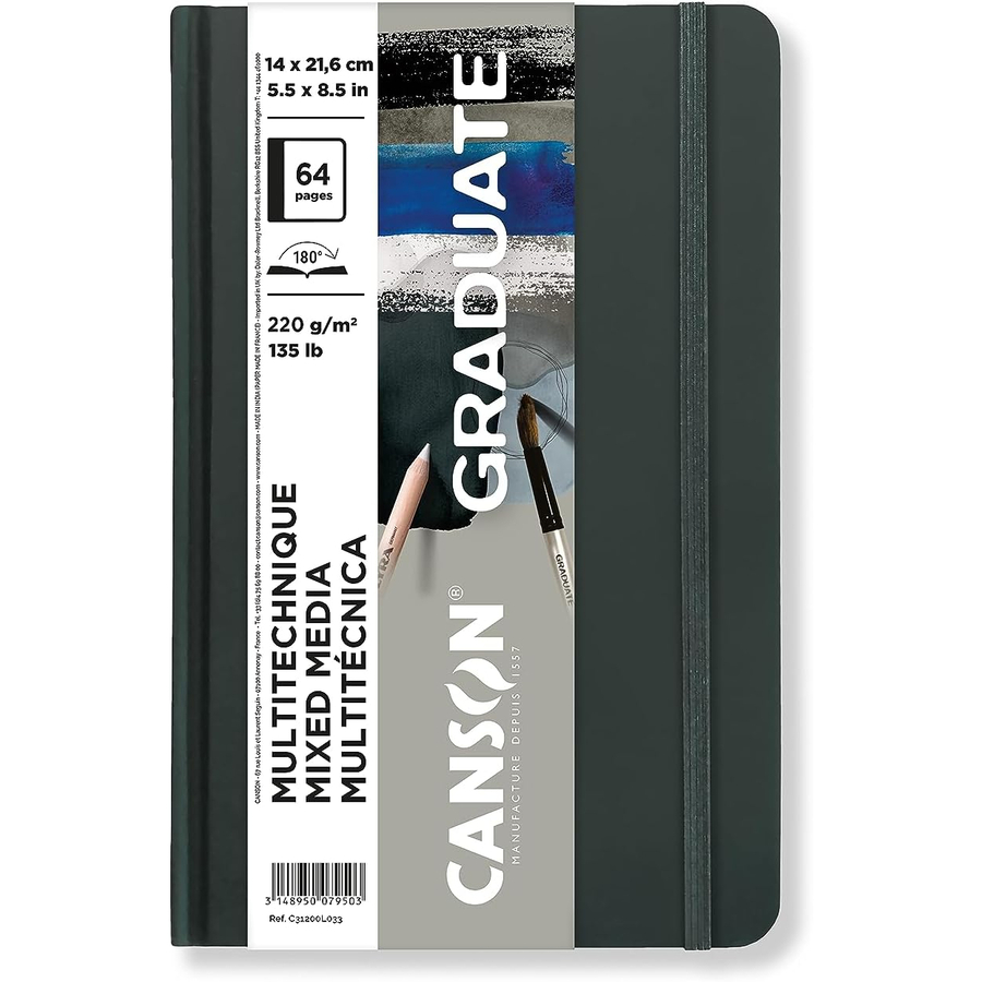 Con Canson Graduate Sketchbook llevás un cuaderno pensado para que explores sin límites. La combinación de papel grueso y doble cara te permite pasar de trazos finos a lavados de color sin que el papel se deforme. Su tapa rígida y cierre elástico aseguran que tu bloc viaje contigo sin desgastarse, mientras el bolsillo interior conserva tus bocetos y anotaciones más valiosas.